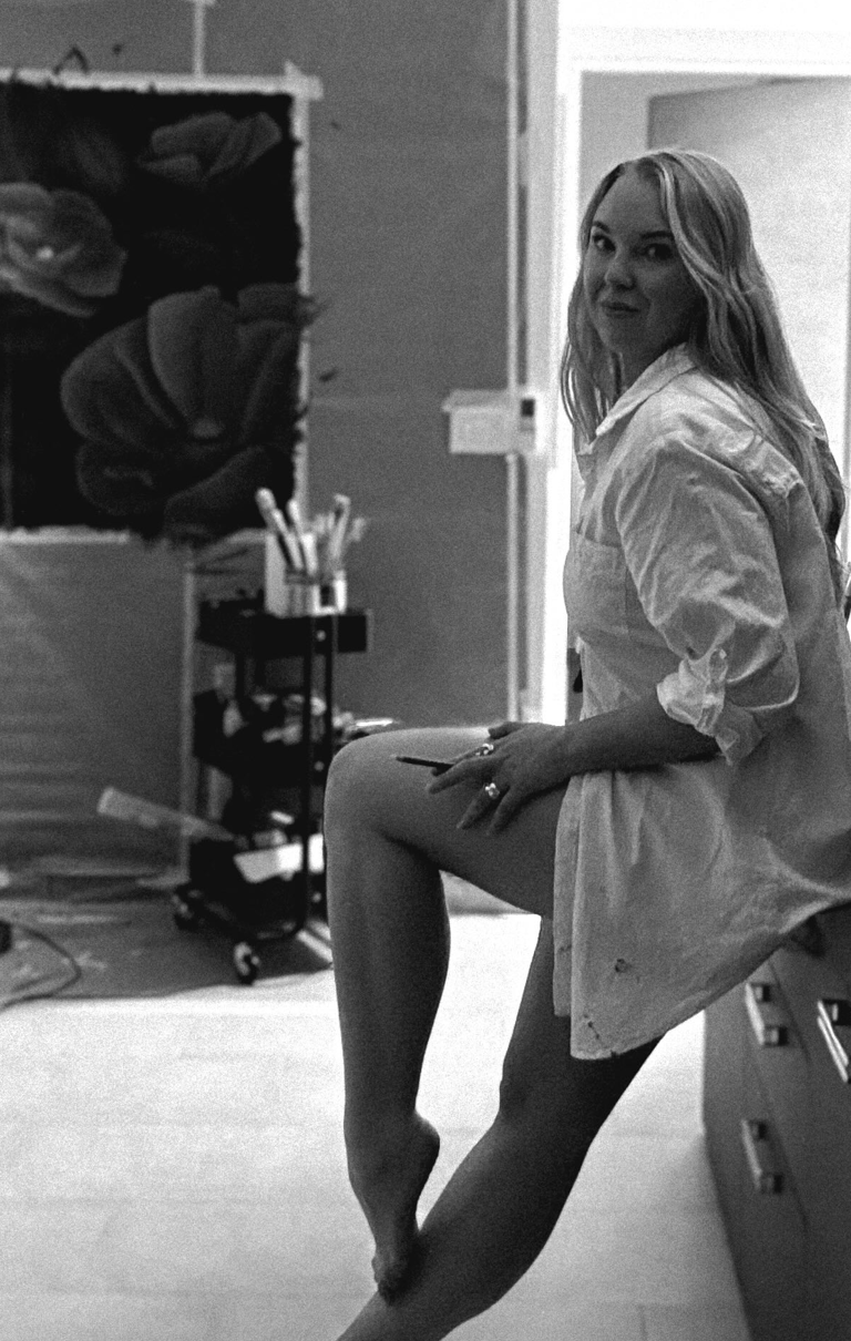 Her paintings are known for their duality — softness built from strength, beauty shaped out of lived experience.