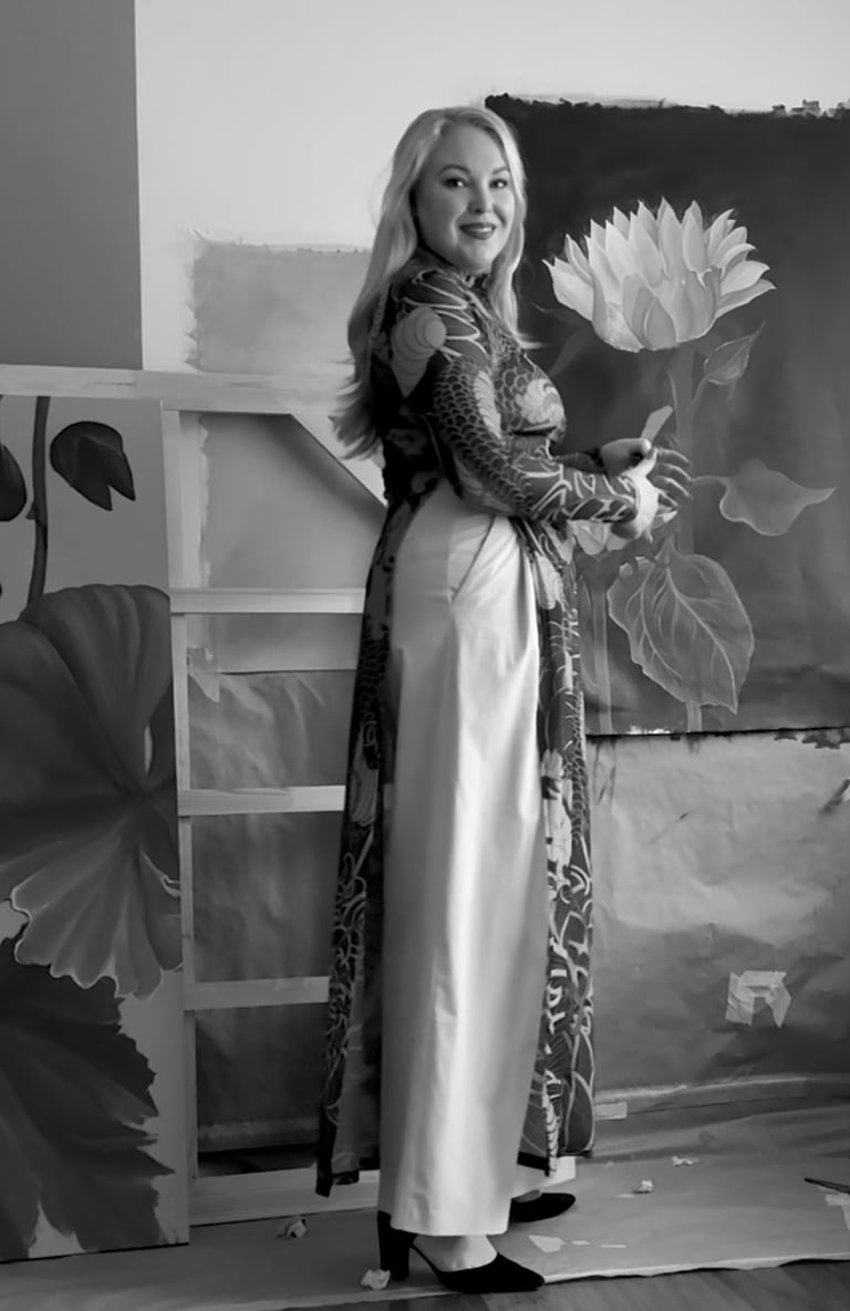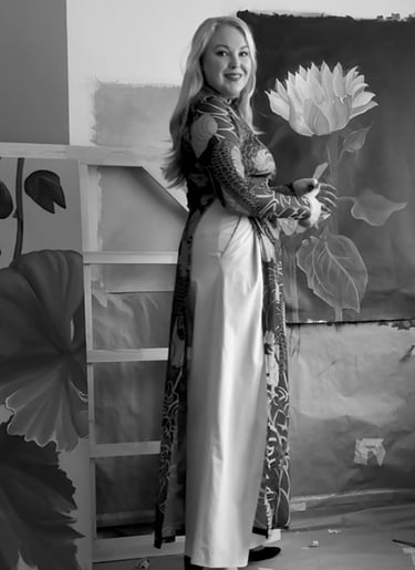 Her work lives in that charged space between reality and imagination: where darkness becomes fertile, where grief learns shape, and where color becomes a form of truth-telling. Every canvas begins as a pulse — a memory, a scar, a quiet insistence — and grows into something intentional, elegant, and unmistakably alive.